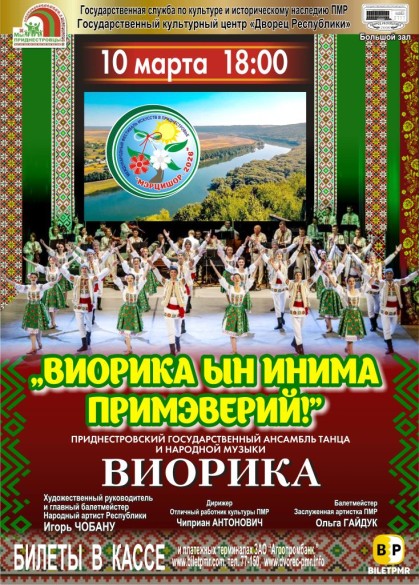 10 марта 2026г. в Большом зале «Дворца Республики» состоится концерт Приднестровского Государственного Ансамбля Танца и Народной Музыки «Виорика» «Виорика ын инима примэверий!».