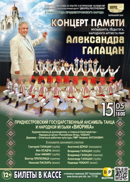 15 мая 2026г.в Большом зале «Дворца Республики» состоится концерт памяти Народного Артиста ПМР Галацан Александра Ефимовича.
