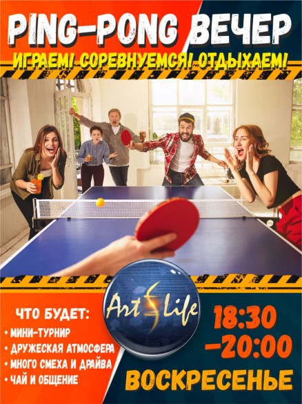 Приглашаем на дружескую игру в настольный теннис в небольшой и уютной компании до 15 человек.