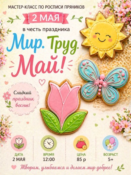 Каждый ребёнок создаст свою майскую сказку, почувствует радость творчества и заберёт домой сладкие пряники — как память о тёплом праздничном дне.