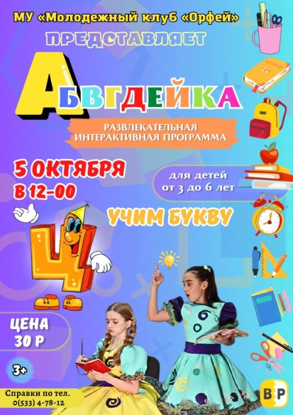 Молодежный клуб "Орфей" с нетерпением ждет вас на увлекательной интерактивной программе "АБВГДейка"!