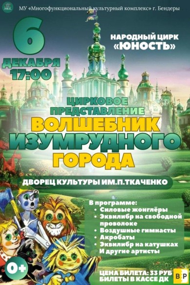 Народный цирк «Юность» приглашает вас на волшебное цирковое представление «ВОЛШЕБНИК ИЗУМРУДНОГО ГОРОДА»!