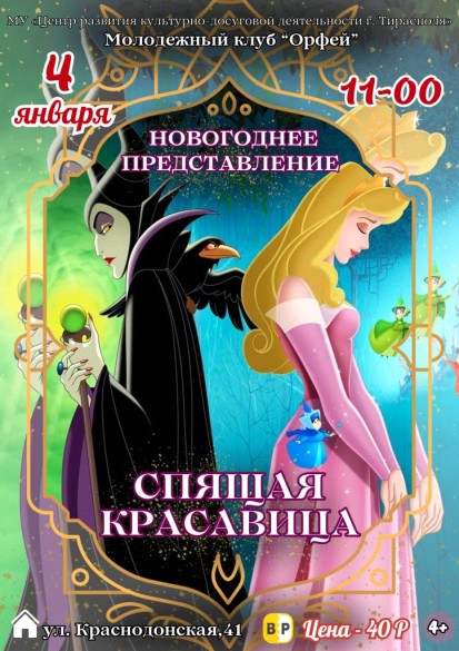 Под Новый год на сцене оживёт любимая сказка о прекрасной принцессе Авроре, коварном заклятии злой Малефисенты, и силе добра, которое всегда побеждает.