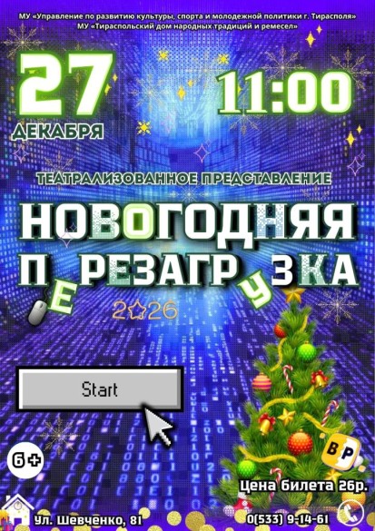 В мире, где чудеса всё чаще прячутся за экранами, а эмоции заменяются смайликами, герои нашего театрализованного представления «Новогодняя перезагрузка» отправляются на поиски волшебства.