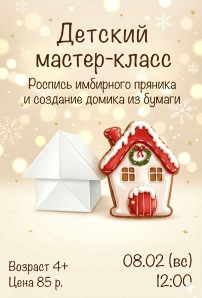 Мы будем расписывать ароматный имбирный пряничный домик, а также создадим уютный домик из бумаги — место, где можно поселить фантазию, радость и хорошее настроение.