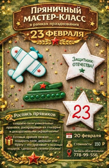В преддверии празднования Дня защитника Отечества приглашаем детей на творческий пряничный мастер-класс!