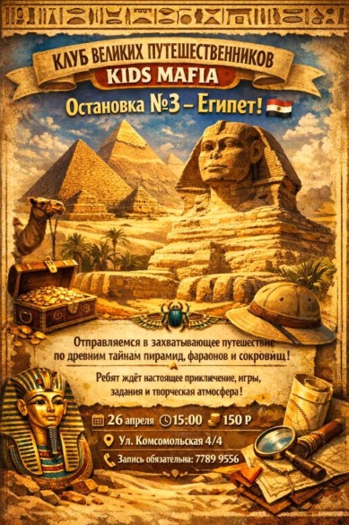 Клуб великих путешественников KIDS MAFIA приглашает детей в Египет!
