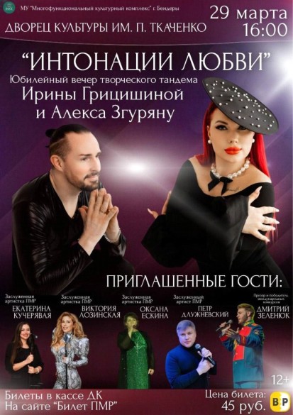 Приглашаем вас на юбилейный творческий вечер дуэта Ирины Грицишиной и Алекса Згуряну.