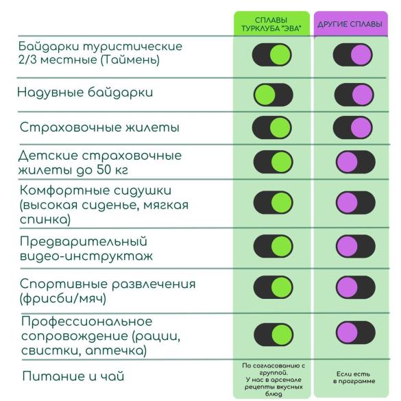 Мы поможем вам насладиться путешествием по реке и обеспечим безопасность на воде. Сплав сочетает в себе физическую активность и возможность отдохнуть.